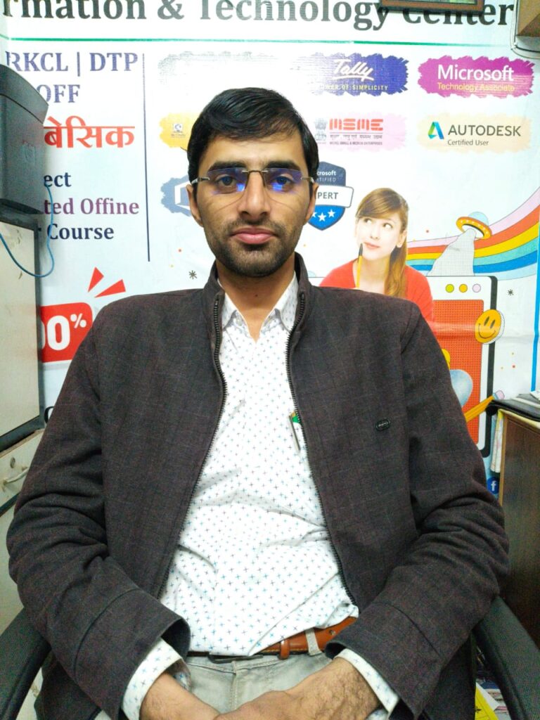Parents, and Respected Associates,On behalf of Manu Computer Center, Sikar – MCIT, I extend a warm welcome to all of you. When we established this institution, we had only one mission — “to empower every student digitally and make them capable of achieving meaningful employment.”In today’s technological era, computer and digital knowledge are not just optional — they have become essential. Whether you are in education, business, government services, or self-employment, digital proficiency is a mandatory skill. Understanding this need, we associated ourselves with well-recognized bodies like RKCL, PMKVY, TEPL, RKVS, ISO, and several other accredited organizations to create a platform that not only teaches but also builds a strong foundation for the future.Our experienced faculty, modern labs, digital classrooms, and job-oriented courses guide students towards practical learning and self-reliance. We take pride in the fact that many of our students are now working in reputed companies, schools, and government institutions.